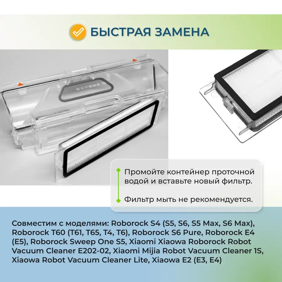 Фильтр для робота-пылесоса Roborock T65 с высокой производительностью фильтрации не менее 99.2%. Эффективно препятствует запылению и защищает от вторичного загрязнения. Элементы без проблем устанавливаются в соответствующее отделение пылесоса и так же легко извлекаются, что способствует комфортному использованию.