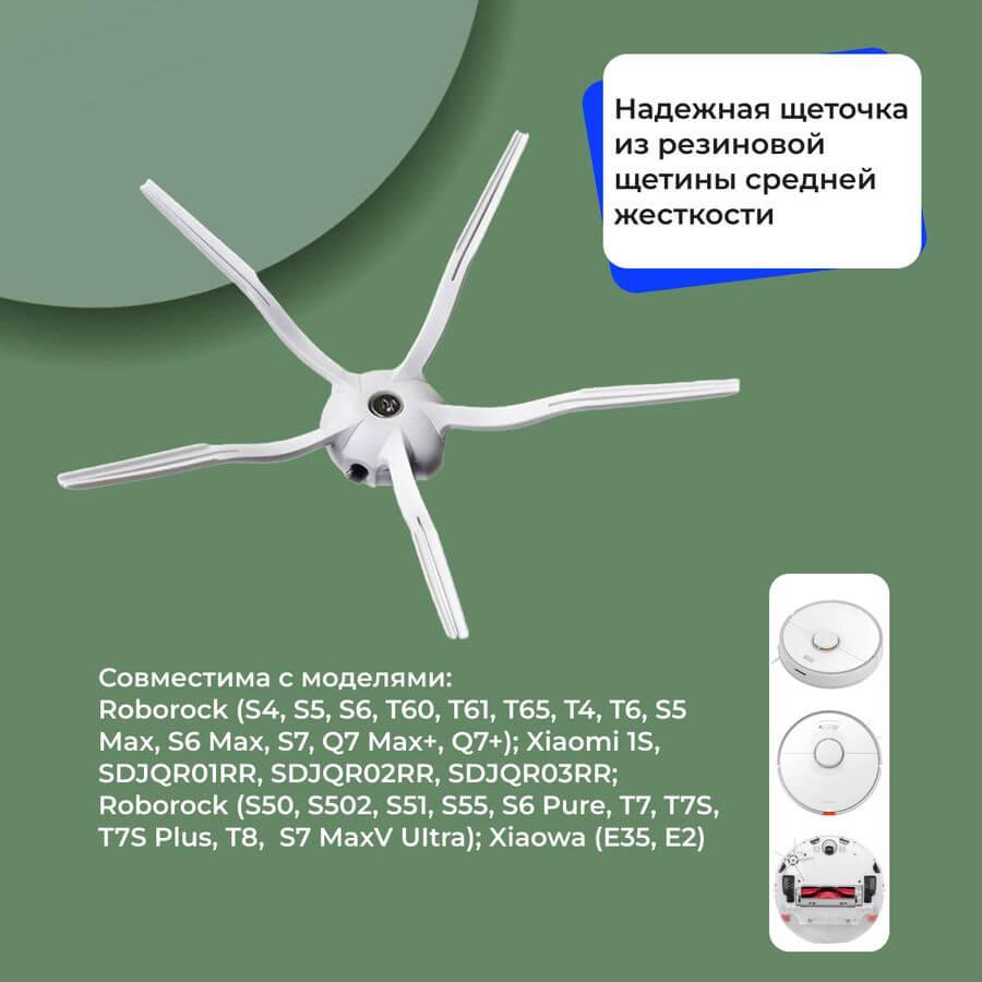 Боковая щетка на 5 лучей для робота-пылесоса Roborock T61, белая 558206