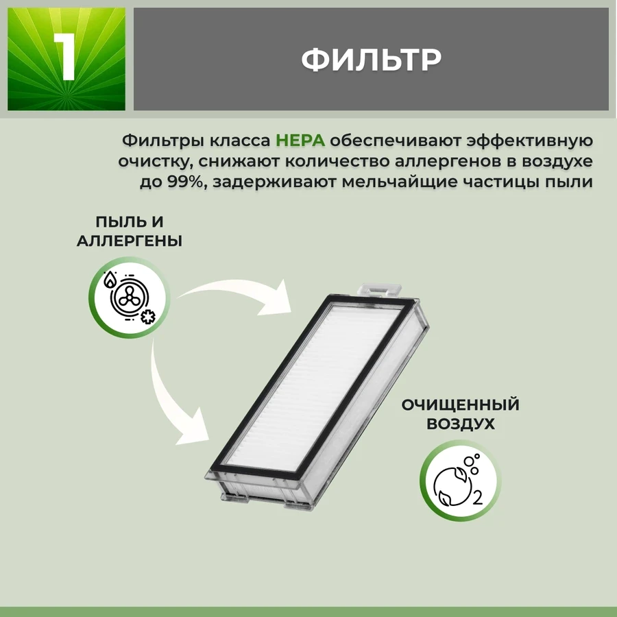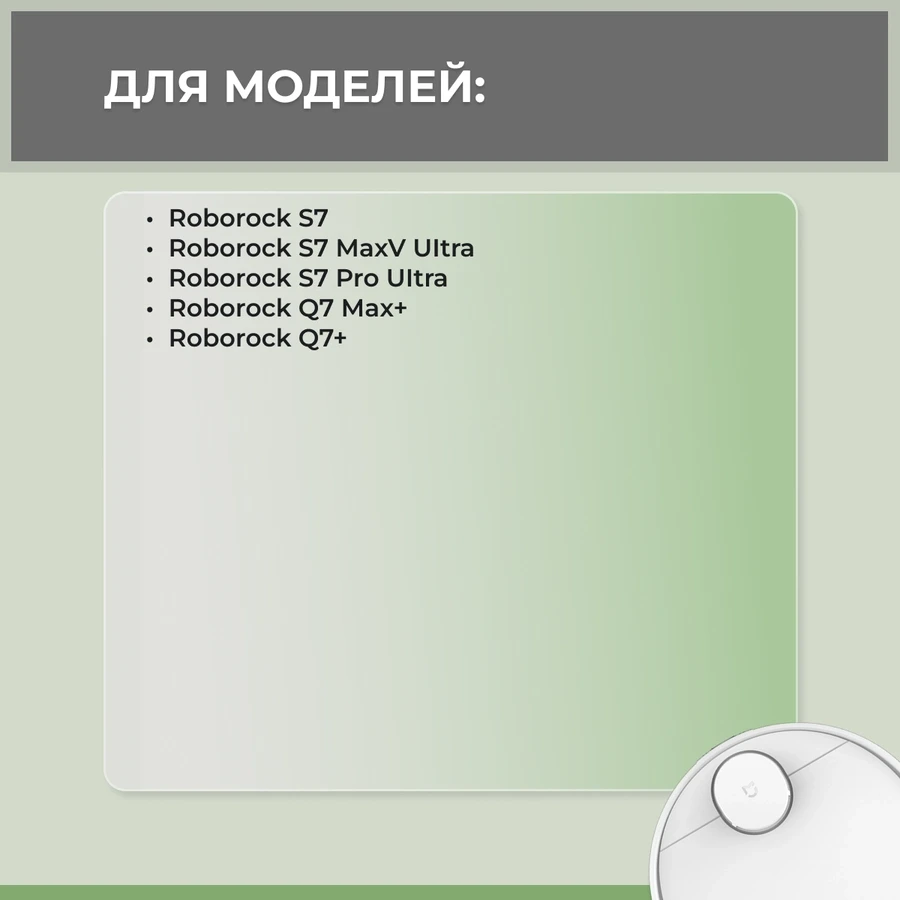 Набор аксессуаров Mini 1 для робота-пылесоса Roborock Q7 Max+. Состоит из 4-x предметов: фильтр (2 шт.), боковая щетка белая на 3 луча (1 шт.), боковая щетка белая на 5 лучей (1 шт.).