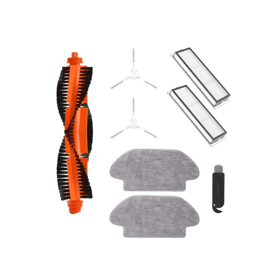 Набор аксессуаров Medium для робота-пылесоса Xiaomi Mijia Mi Robot Trouver LDS (RLS3). Состоит из 8-ми предметов: основная щетка (1 шт.), тряпка (2 шт.), фильтр (2 шт.), боковая щетка белая (2 шт.), инструмент для очистки (1шт.).