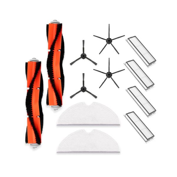 Набор аксессуаров Maxi для робота-пылесоса Xiaomi Mi Robot Vacuum Cleaner (SDJQR02RR). Состоит из 12-ти предметов: основная щетка (2 шт.), тряпка (2 шт.), фильтр (4 шт.), боковая щетка на 3 луча (2 шт.), боковая щетка на 5 лучей (2 шт.).