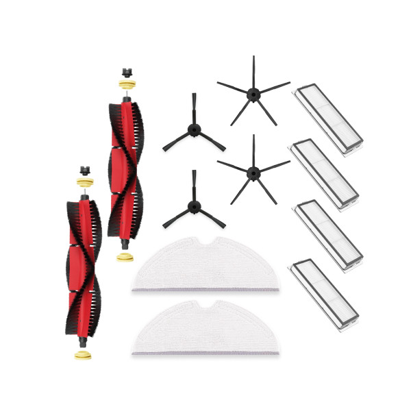 Набор аксессуаров Maxi для робота-пылесоса Xiaomi Mi Robot Vacuum Cleaner (SDJQR02RR). Состоит из 12-ти предметов: основная щетка с роликами (2 шт.), тряпка (2 шт.), фильтр (4 шт.), боковая щетка черная на 3 луча (2 шт.), боковая щетка черная на 5 лучей (2 шт.).