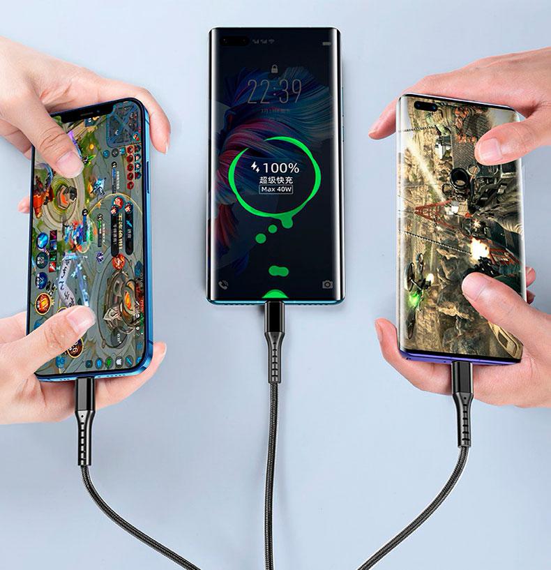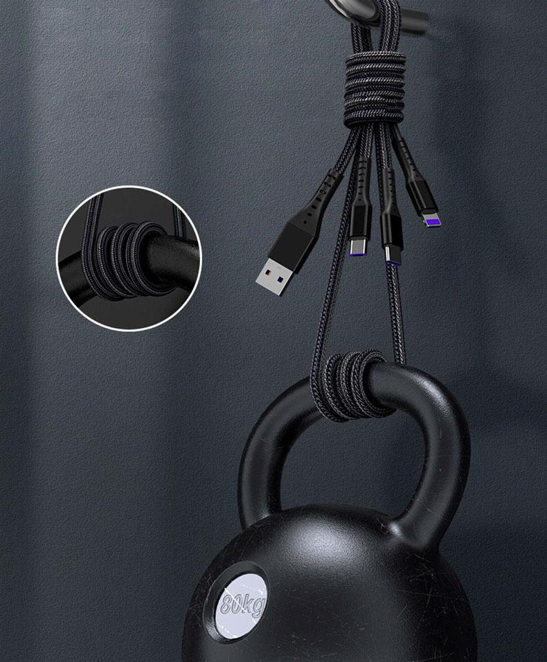 Удобное и компактное зарядное устройство для сверхбыстрой зарядки сразу с тремя разными штекерами - MicroUSB, Lightning, Type-C. Премиальное износостойкое высококачественное покрытие обеспечит долговременное использование.