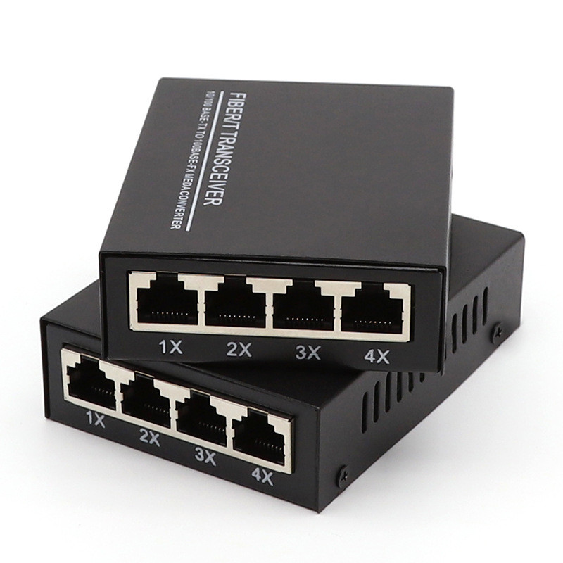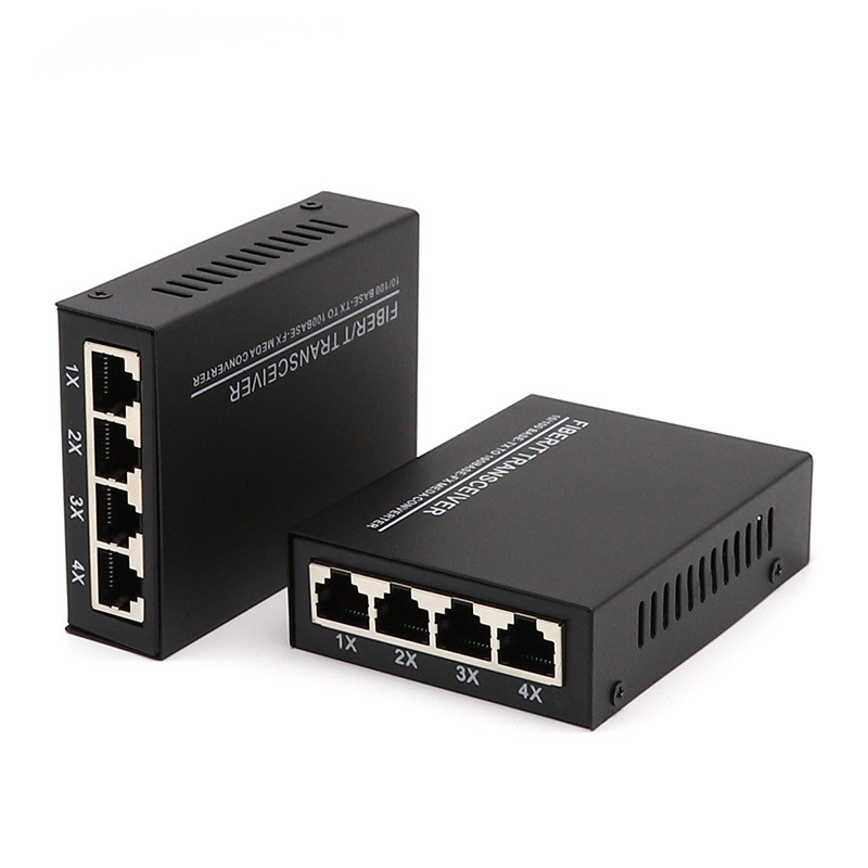 Медиаконвертер - удлинитель - коммутатор оптический 4xRJ45 10/100MB - 1xSC до 20км одномодовый одноволоконный,