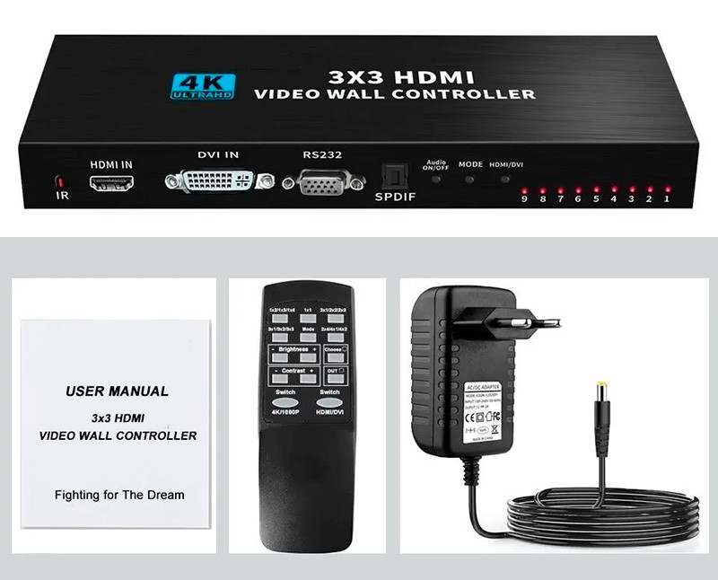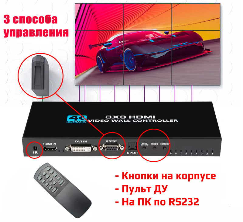Контроллер видеостены HDMI 4K UltraHD 3x3 до 9 экранов, RS232, SPDIF/Toslink, пульт ДУ 559186