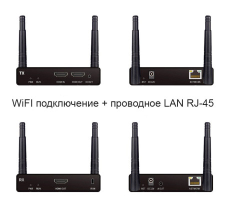 Удлинитель сигнала HDMI по Wi-Fi до 100 метров, активный, FullHD 1080p, комплект, черный 559320