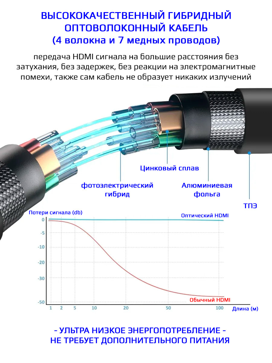 Оптические HDMI-кабели (на основе fiber optic) принципиально отличаются от традиционных медных и предлагают уникальные преимущества для передачи сигналов 8K@60Hz и 4K@120Hz: